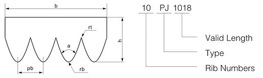 | Type | Ribsection(mm) | Angle of rib(o) | Belt Thickness(mm) | Rib Numbers | Length range |